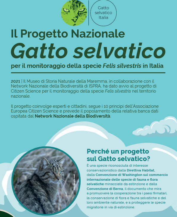Progetto di Citizen Science per il monitoraggio del gatto selvatico in ItaliaUn video ed un’infografica per raccontare il progetto, le caratteristiche della specie e i dati ad oggi disponibili https://www.nnb.isprambiente.it/api/it/eventi-e-notizie/notizie-dalla-rete-dei-partner/progetto-di-citizen-science-per-il-monitoraggio-del-gatto-selvatico-in-italiahttps://www.nnb.isprambiente.it/api/it/eventi-e-notizie/notizie-dalla-rete-dei-partner/progetto-di-citizen-science-per-il-monitoraggio-del-gatto-selvatico-in-italia/@@download/image/Screenshot 2025-10-09 163055.png